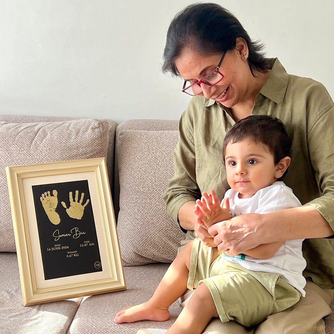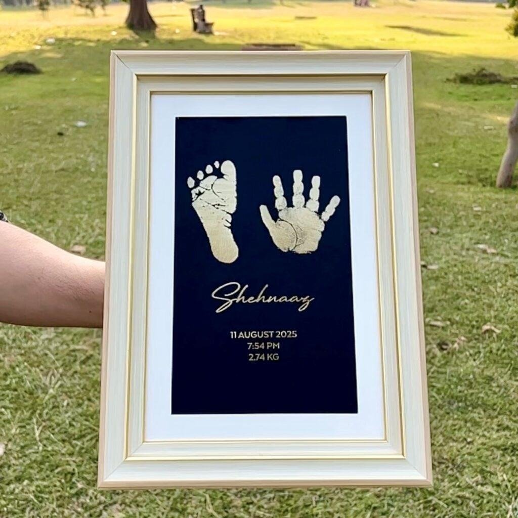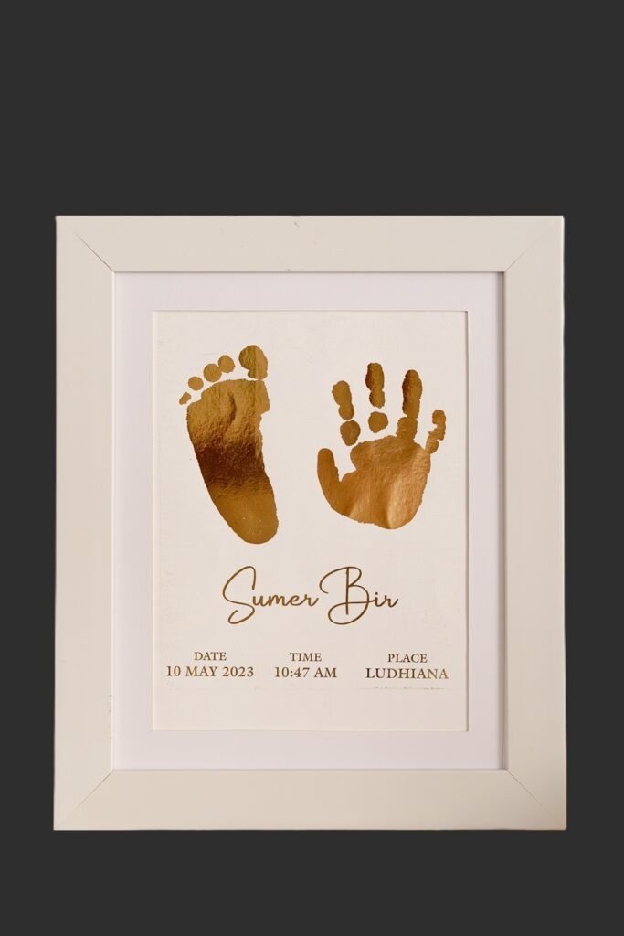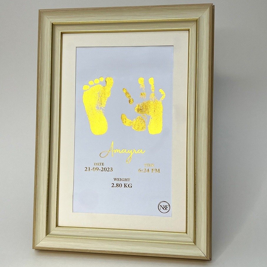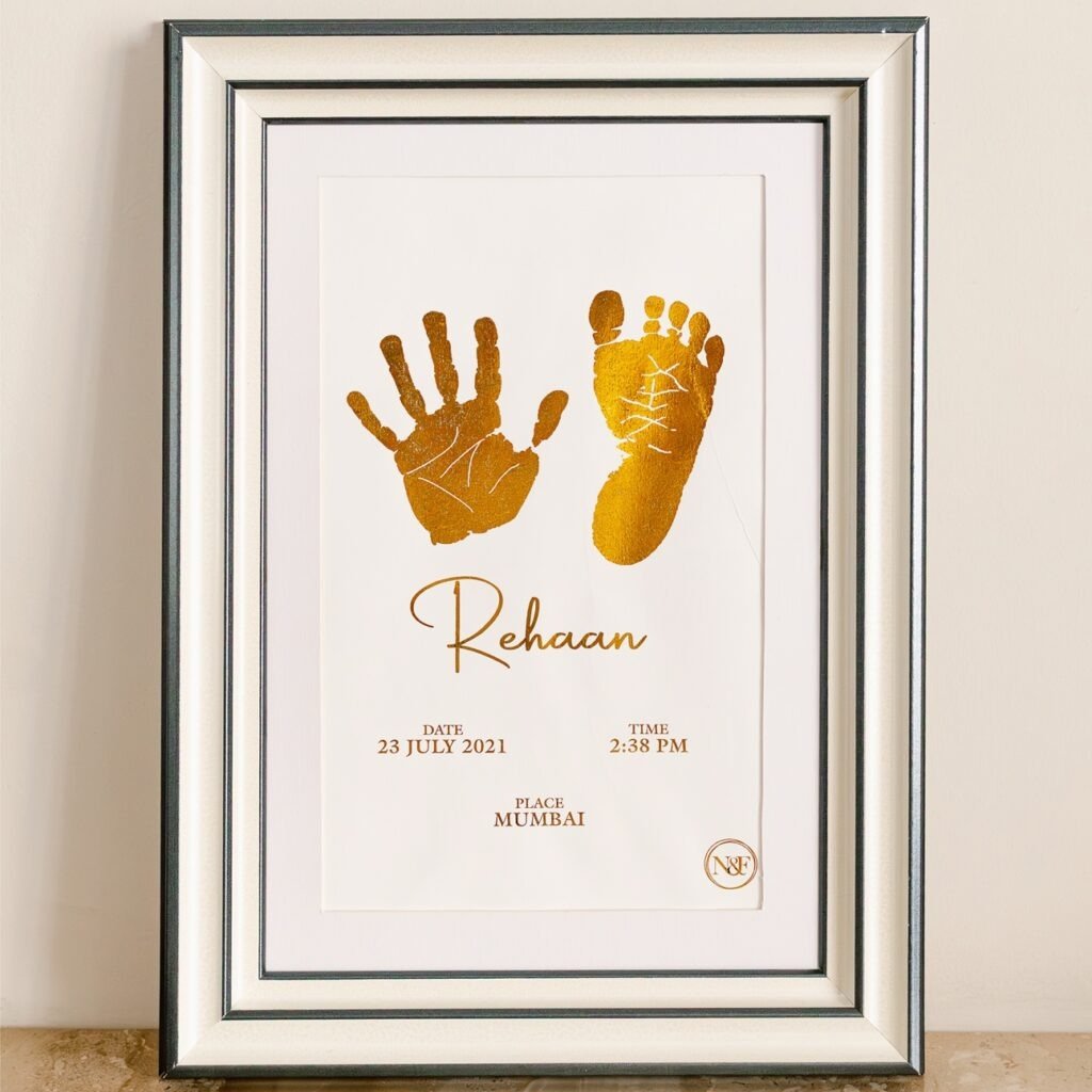 Personalized Newborn Metallic Imprint Frame – For kids upto 24 Months – 2 IMPRINTS – Perfect Gift for Newborns & Kids | Perfect Nursery Decor & Baby Shower Gift | Customised Baby Gifts Ideas